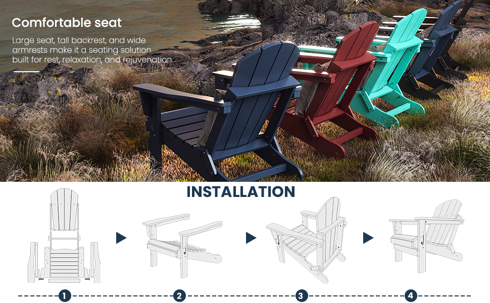 STRENGTH AND DURABILITY: The thick plastic material is hearty and naturally complements outdoor living. The Adirondack chair is subject to a variety of climate changes including strong wind, sun exposure.