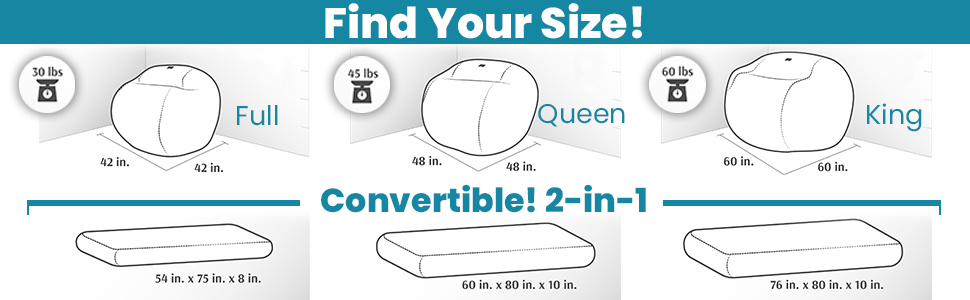 CONVERTIBLE CHAIR: Giant foam chair converts to a full-size bed for guests, slumber parties, or just relaxing. Better than a bean bag, no beans about it!