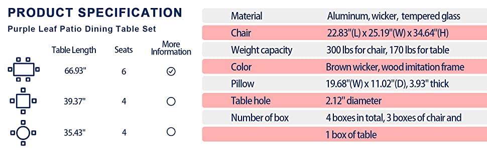 - Purple Leaf patio dining set offers you a great experience in dining time or in conversation.