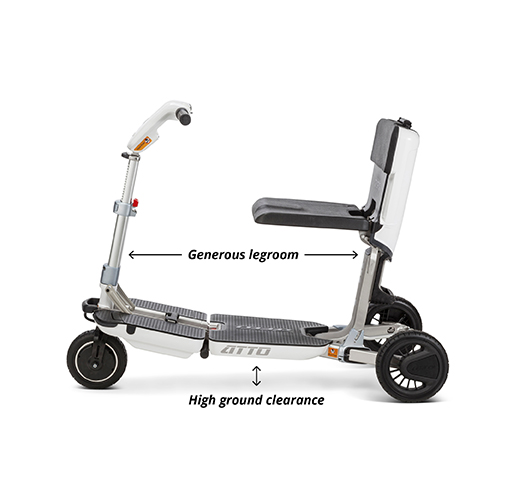 The ample legroom provided in the ATTO is roomy and extremely comfortable, but it also offers a sensible solution for anyone challenged to bend their knees freely. ATTO also has 4.7" ground clearance, so you can ride on various terrains and trails.